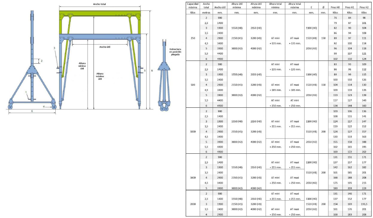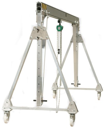 Portico de aluminio muy ligero y robusto perfecto para el levantamiento y desplazamiento de cargas. Se montan con ruedas para trabajar en interior o exterior para fácilitar el desplazamiento de la carga sobre un suelo liso y limpio. Marcado CE.