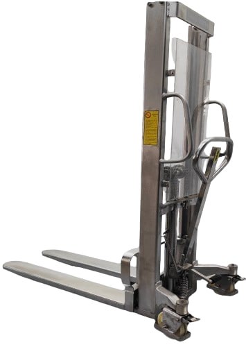 Apilador INOXIDABLE de elevación y traslación manual, la solución más económica para la elevación de cargas hasta 1.000 Kg. Uñas FIJAS de 1.150 x 540 mm. Descenso controlado de cargas. Apto para zonas con espacio pequeños / medianos. Rejilla de seguridad. Válvula de sobrecarga de seguridad. Freno en las ruedas. Marcado CE.